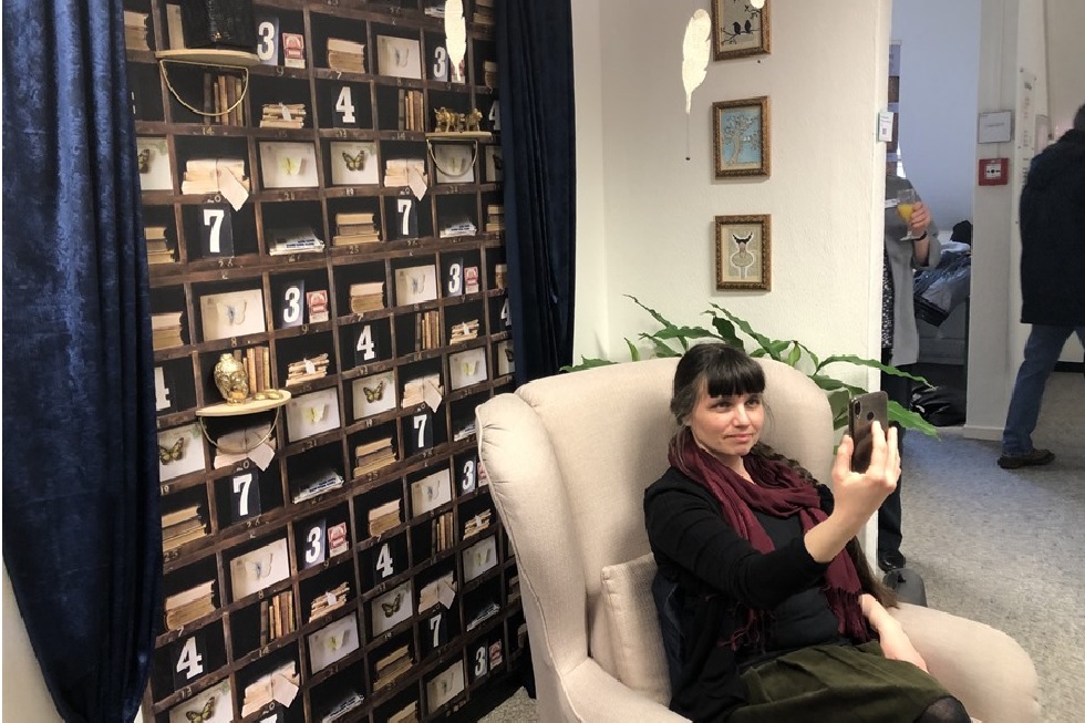 Die Exponate sind in der zweiten Etage der Bibliothek zu sehen. Dort bieten Schützhold und ihre Mitarbeiterinnen auch erstmals einen Selfie-Point an: Ein gemütlicher Lesesessel und ein antikes Regal im Hintergrund sind für ein perfektes Selbstportrait platziert.