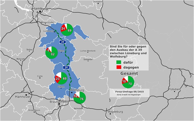 Demnach werden vor allem die regionalen Zentren Lüneburg, Uelzen, Gifhorn, Wittingen und Wolfsburg sowie die Gemeinden nahe der A 39 profitieren. "Dort gibt es viele transportintensive Unternehmen, die naturgemäß stark auf Veränderungen der Verkehrsinfrastruktur reagieren", sagt Zeinert. "Deshalb sind hier besonders starke regionalökonomische Impulse zu erwarten." Freuen dürfte die Platzierung des Bauvorhabens im BVWP aber vor allem die Menschen in der Region, die sich einer repräsentativen Umfrage des Meinungsforschungsinstituts forsa aus 2015 zufolge mit einer deutlichen Mehrheit von 70 Prozent pro Autobahnlückenschluss positionierten.
