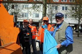 Neben Infostand, Spiel-, Bastel- und Malangeboten ist für die jüngeren Teilnehmer auch der große Müllwagen auf dem Herzogenplatz interessant. Zwischendurch wird mit Musik und kleinen Interviews über den aktuellen Stand des Frühjahrsputzes berichtet.