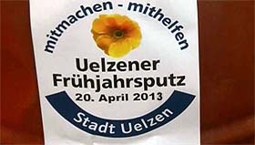 Es ist wieder soweit: der alljährliche Frühjahrsputz steht an. Doch nicht nur zu Hause wird jetzt wieder sauber gemacht und entrümpelt. Am Samstag, dem 21. April werden Uelzener Bürger und Bürgerinnen aller Altersgruppen ihre Stadt beim "Uelzener Frühjahrsputz" gemeinsam von achtlos weggeworfen Müll befreien. Derzeit laufen die Vorbereitungen auf Hochtouren.