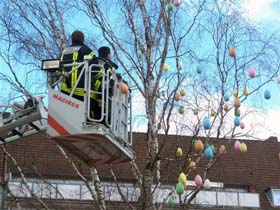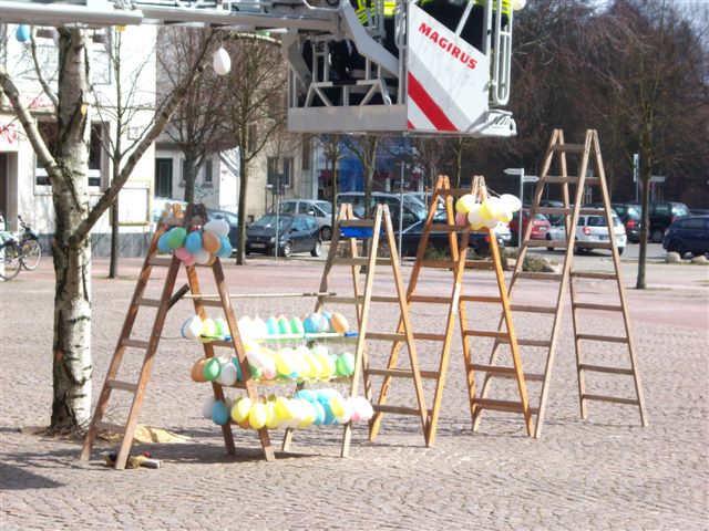 Wer kennt sie nicht, die mit einigen Plastikeiern behängten Bäumchen in den Vorgärten als ersten Frühlingsgruß? In Uelzen ist das etwas anders - fast 4000 Ostereier schmücken pünktlich zum verkaufsoffenen Sonntag am 3.4.2011 die Marktstraßen in der Innenstadt. Neben den 70 im letzten Jahr neu gepflanzten Amberbäumen bekommen auch die bereits vorhandenen 38 Bäume vor dem Blattaustrieb einen saisonalen Schmuck. So entsteht als deutsches Novum die Uelzener Osterallee. Die 10 cm großen Acryleier wurden alle liebevoll individuell gestaltet.