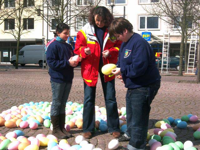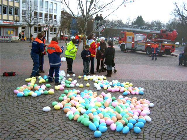 Optischer Höhepunkt ist die ca. 15 Meter hohe Birke, die am Samstag mit rund 750 Eiern von der Jugendfeuerwehr und dem Jugendrotkreuz geschmückt wird, auf dem Herzogenplatz vor dem Rathaus. Bereits am Freitag wurde mit den ersten Bäumen begonnen, je nach Witterungsverhältnissen sollen alle Eier bis zum nächsten Wochenende aufgehängt sein. Jeder Baum wird mit einem Schild versehen, das Auskunft über die kleinen und großen Künstler gibt.