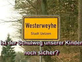 Vergangenen Montag wurde auf der Sitzung des Ortsrates Kirch- und Westerweyhe ein Film, der von Uelzen TV - Lothar Ullrich gedreht wurde, gezeigt. Dieser demonstrierte eindrucksvoll, wie es auf der nur sechs Meter breiten Straße Altes Dorf zugeht, wenn sich zwei Lastwagen aneinander vorbeiquetschen müssen. Mit ausgeklappten Spiegeln misst ein Lastwagen 3,20 Meter in der Breite. Aneinander vorbei kommen sie nur, wenn sie entweder die Spiegel einklappen oder aber über die Fußwege ausweichen. Die sind auf der einen Seite 1,50 Meter, auf der anderen 1,70 Meter breit Noch enger wird es, wenn sich in dieser Straße landwirtschaftliche Fahrzeuge begegnen.