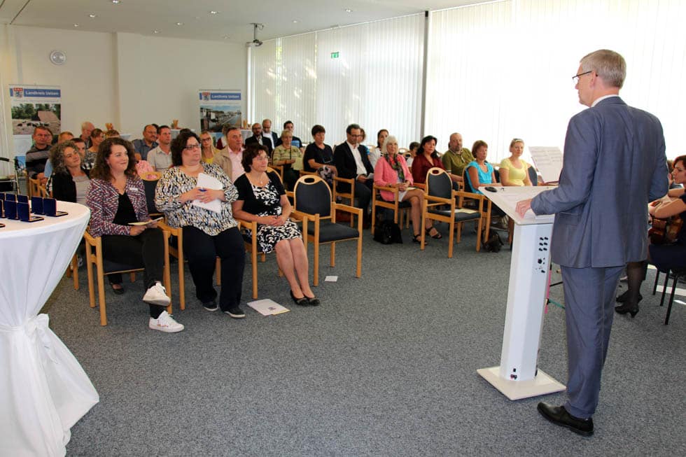 "Mit der symbolträchtigen Veranstaltung möchten wir unsere Neubürger ausländischer Herkunft offiziell willkommen heißen", so Landrat Dr. Heiko Blume in seiner Begrüßung.