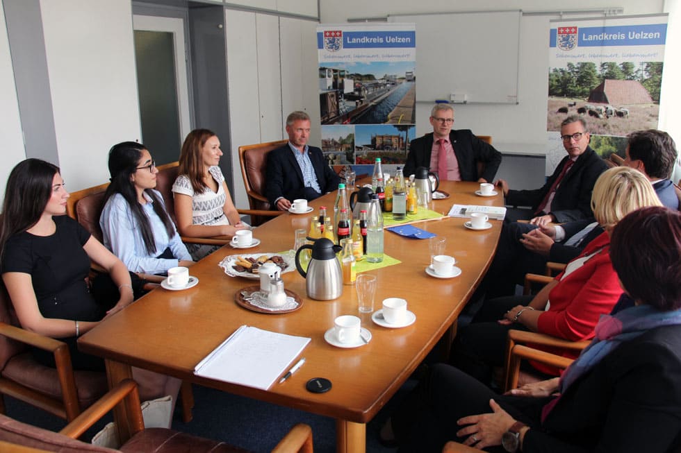 Heute jedoch waren die drei maltesischen Berufsschülerinnen erst einmal zu Gast im Uelzener Kreishaus. Im Rahmen eines kleinen Empfangs hatte es sich Landrat Dr. Heiko Blume nicht nehmen lassen, die jungen Frauen persönlich zu begrüßen. Begleitet wurden die angehenden Bankkauffrauen durch den Schulleiter der BBS I Stefan Nowatschin, durch Oberstudienrat Rolf Fleischmann, Uelzens Bürgermeister Jürgen Markwardt sowie Maren Waltje von der Volksbank Uelzen-Salzwedel und Ina Nörenberg von der Sparkasse Uelzen Lüchow-Dannenberg. Die beiden Einrichtungen stehen den Nachwuchskräften während ihres insgesamt dreiwöchigen Aufenthaltes als Ausbildungsort zur Verfügung. Hier soll ihnen auch vermittelt werden, wie in Deutschland die duale Berufsausbildung in Sparkassen- und Bankbetrieben funktioniert.