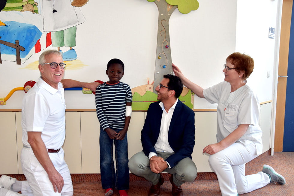 Durch eine chronische Knocheneiterung am Schienbein konnte der achtjährige Moises aus Angola viele Monate lang nicht mehr richtig auftreten, geschweige denn laufen und mit anderen Kindern spielen. Alle Versuche, die Verletzung des kleinen Jungen in seinem Heimatland zu behandeln, scheiterten. Durch eine Kooperation mit Friedensdorf International e.V. kam Moises ins Helios Klinikum Uelzen, wo sein Bein von Prof. Dr. Jürgen Brand, Chefarzt der Orthopädie und Unfallchirurgie operiert wurde. Auch das Team der Station für Kinder- und Jugendmedizin um Chefarzt Dr. Swen Geerken sowie geschulte Ehrenamtliche von Friedensdorf International haben sich in Uelzen liebevoll um den kleinen Patienten gekümmert