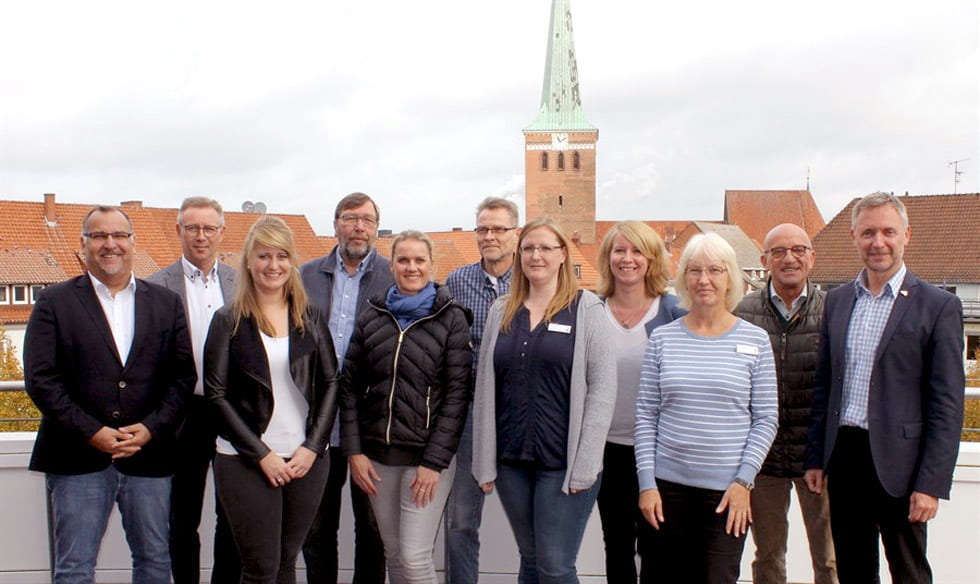 von links nach rechts: Alexander Hass (Leiter Stadtmarketing), Uwe Schwenke (1. Vors. Handelsverein), Katharina Dundler (Stadtmanagerin), Karl-Heinz Grosch (Handelsverein), Franziska Albrecht (mycity), Wilfried Gade (Hansestadt Uelzen, Ordnungs- und Gewerbewesen), Nicole Schwarz (Hansestadt Uelzen, Presse- und Öffentlichkeitsarbeit), Sandy Naake (Hansestadt Uelzen, Presse- und Öffentlichkeitsarbeit), Kornelia Hillmer (Hansestadt Uelzen, Familien-Servicebüro), Mathias Wegener (Chorleiter), Jürgen Markwardt (Bürgermeister Hansestadt Uelzen). Foto: Hansestadt Uelzen