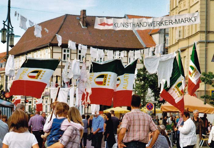 Im Rahmen des Kultursommers 2011 wurde unter dem Motto "BELLA ITALIA" ein italienischer Abend in den Uelzener Marktstraßen veranstaltet. Lange weiße Unterhosen, rosa Schlüpfer und schwarze Tangas - die Auswahl an Unterwäsche an den Leinen über den Marktstraßen ist groß - und die Begeisterung beim Publikum für die Dekoration ebenso.