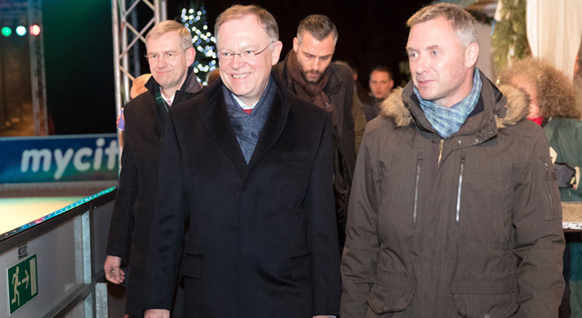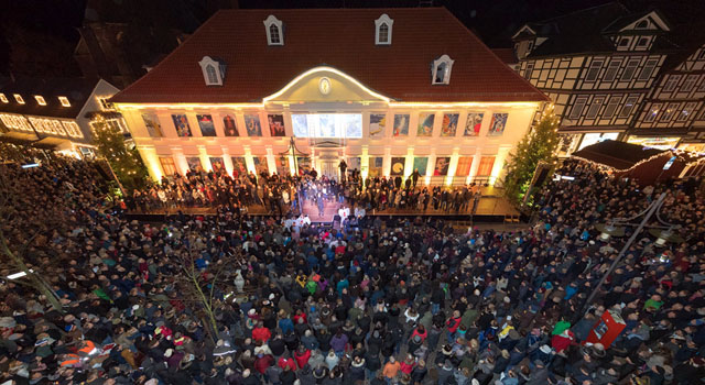 Mehrere tausend Menschen drängten sich vor dem Alten Rathaus als das 24. Fenster am Uelzener Adventskalenders geöffnet wurde und dazu auch wieder Niedersachsens Ministerpräsident Stephan Weil in die Stadt kam. Das 13. Mal konnte ein Landesvater zum Adventskalenderabschluss in der Stadt begrüßt werden.